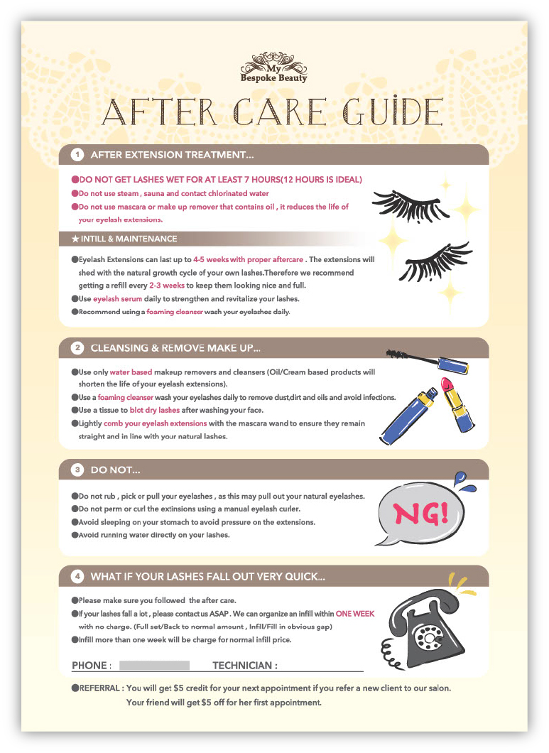 また、施術後にお客様に渡すアフターケアが書かれた用紙もリニューアルしました。