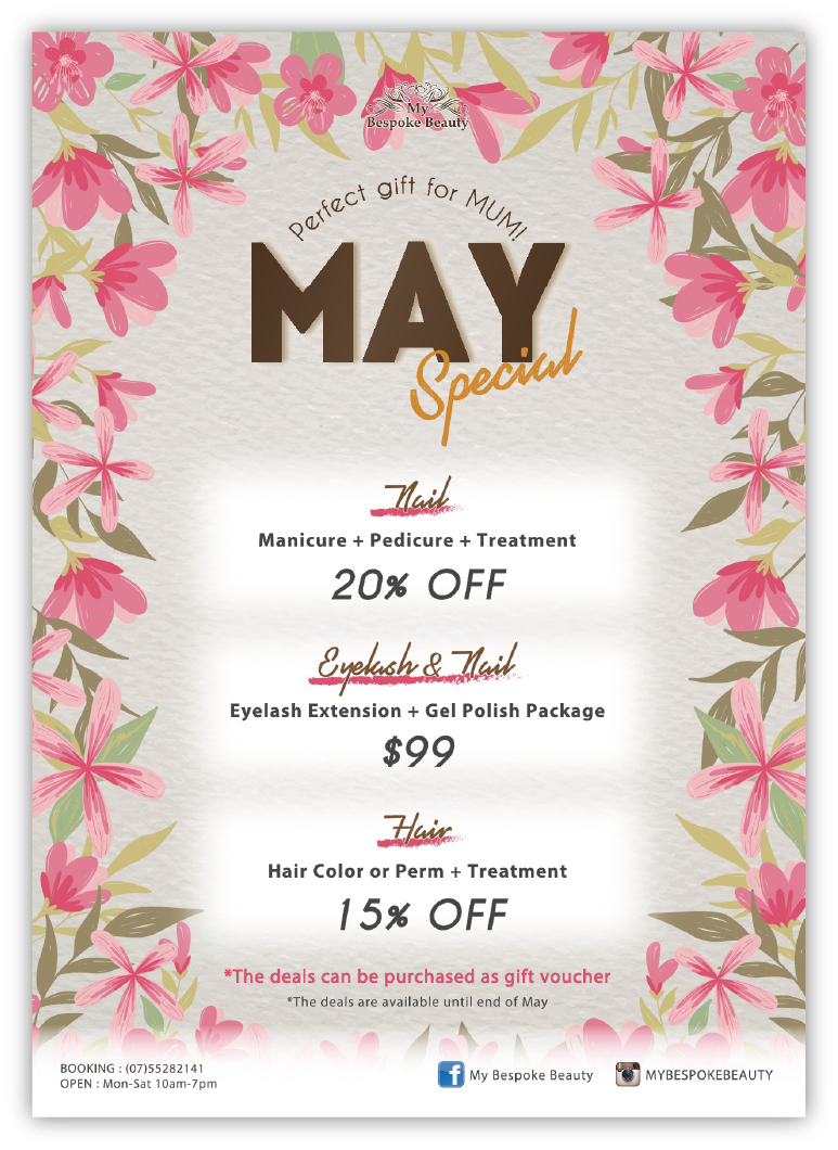オーストラリア滞在時、ビューティーサロンのメニューデザインやPOPなどのデザインに携わりました。